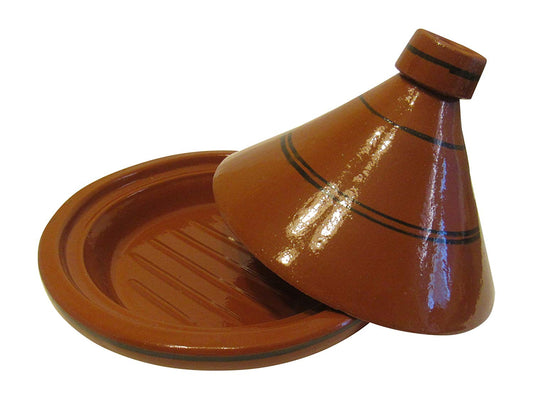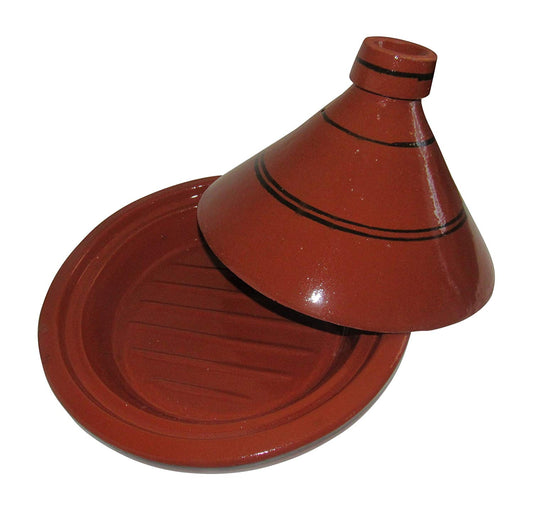 Handmade Authentic Moroccan Ceramic Cooking and Serving Tagine, Lead Free, Brown with Black Stripes, Small 10 1/2 " Diameter x 9 " H