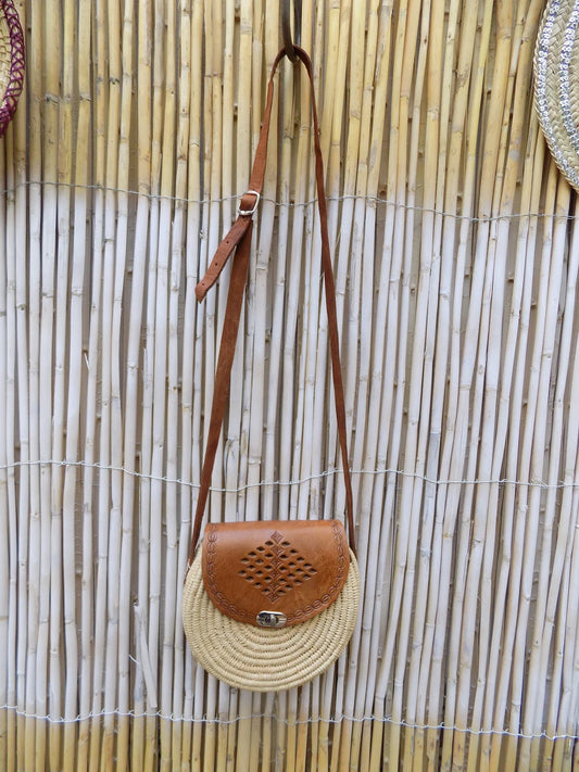 Raffia Bag, Crossbody Bag, Moroccan Raffia Handbag, Small Round Shoulder Bag, Boho Moroccan Handmade